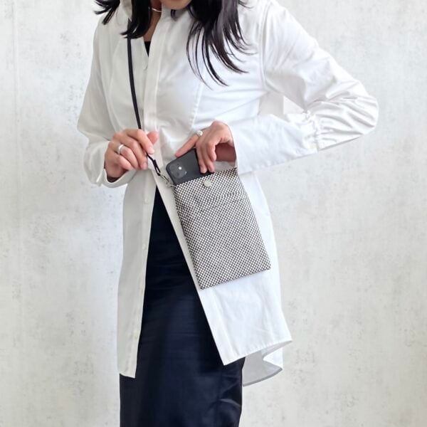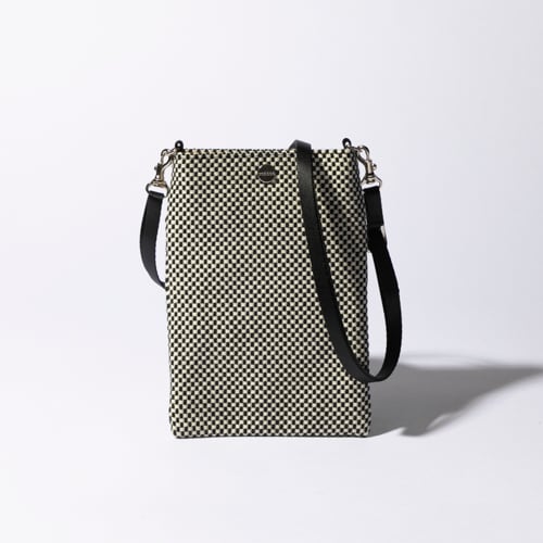 sasicco スマホショルダー 白と黒の市松 | 三河木綿 刺子織 | タネイ | 柔道着のカバン | smart phone shoulder bag | white & black