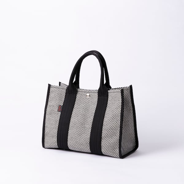 sasicco スクエアトートM 白と黒の市松 | 三河木綿 刺子織 タネイ | square tote M | white & black
