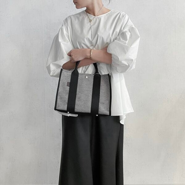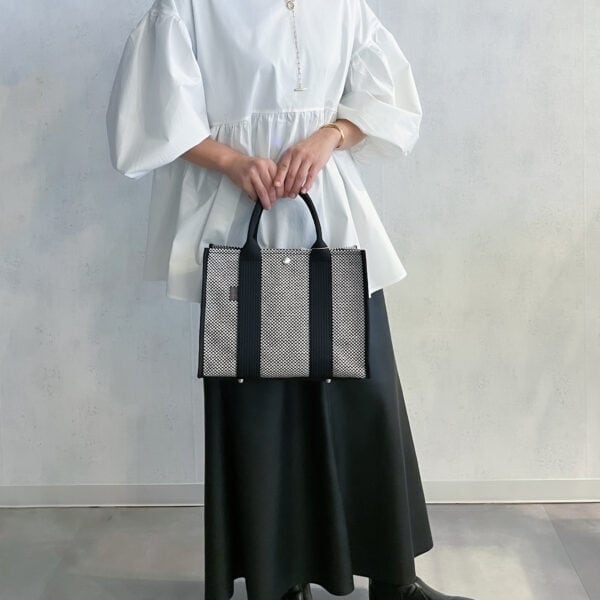スクエア型のフォルムがスタイリッシュなトートバッグ。