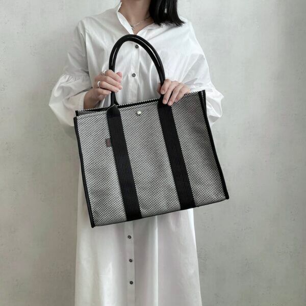 sasicco スクエアトートL 白と黒の市松 | 三河木綿 刺子織 タネイ | square tote M | white & black