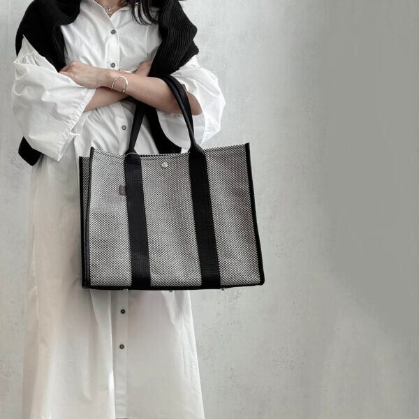 スクエア型のフォルムがスタイリッシュなトートバッグです。