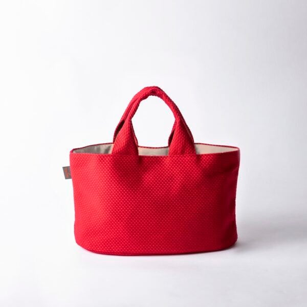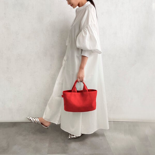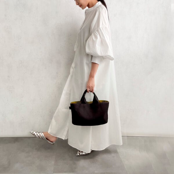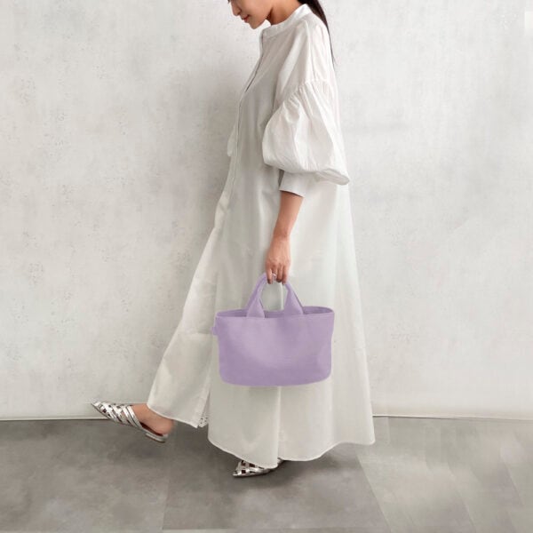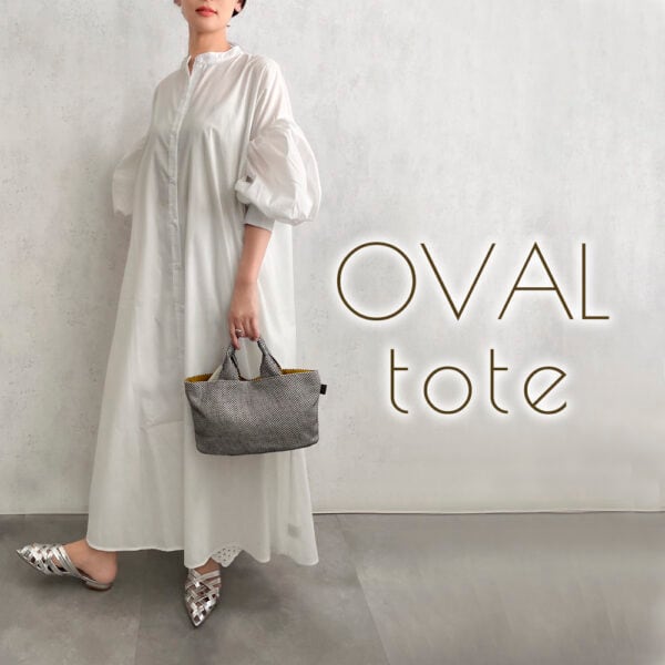 当店だけで販売されている商品です。バッグの底が楕円形で、横長サイズのコロンとした個性的なミニトートバッグ。コンパクトな見た目とは裏腹に、マチがしっかりあるので見た目以上の収納力が備わっています。日常使いのバッグとしても、ランチトートとしても幅広く使える一品です。