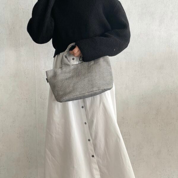 sasicco オーバルトート 白と黒の市松 | 三河木綿 刺子織 タネイ | oval tote | white & black