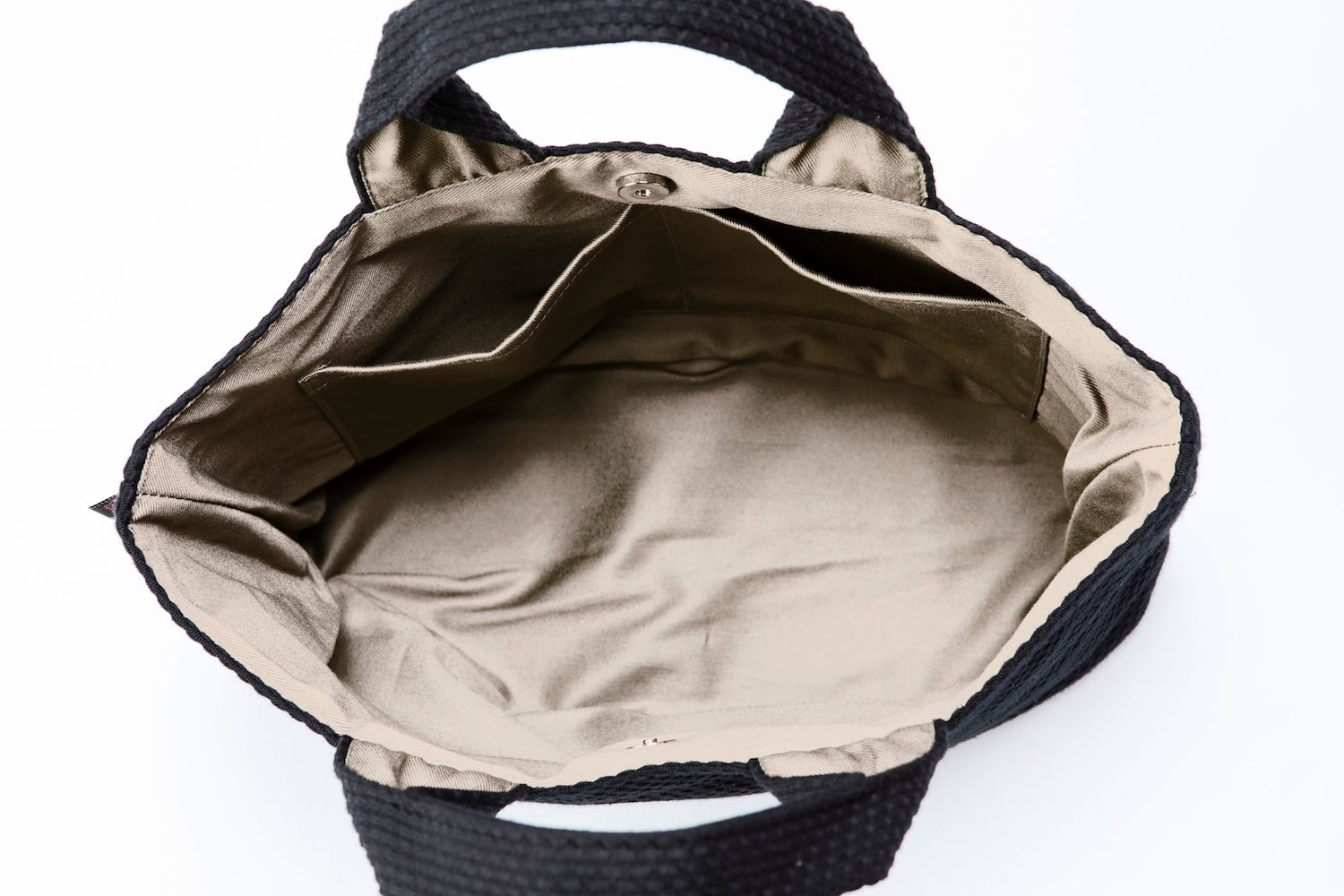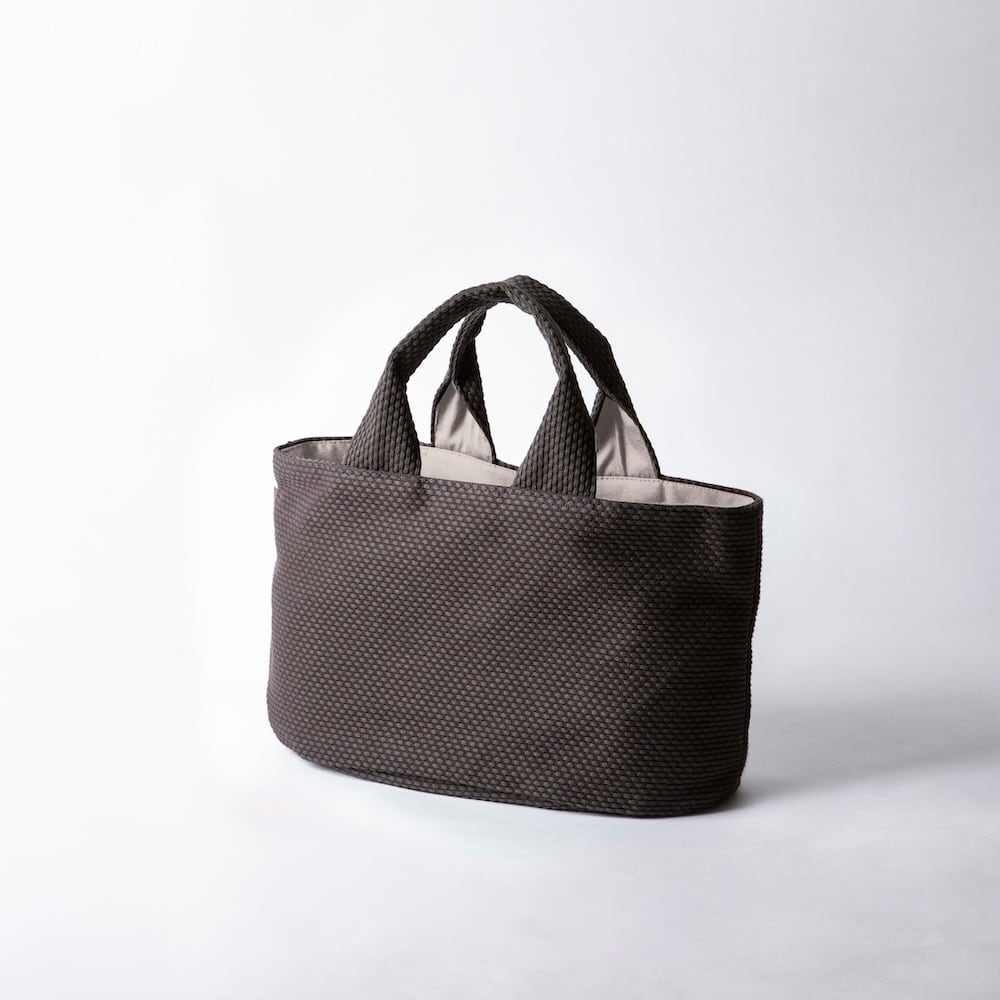 当店だけで販売されている商品です。バッグの底が楕円形で、横長サイズのコロンとした個性的なミニトートバッグ。コンパクトな見た目とは裏腹に、マチがしっかりあるので見た目以上の収納力が備わっています。日常使いのバッグとしても、ランチトートとしても幅広く使える一品。