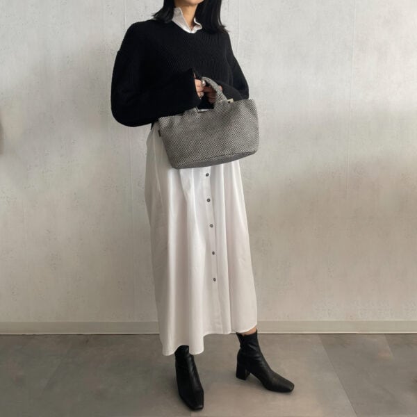 当店だけで販売されている商品です。バッグの底が楕円形で、横長サイズのコロンとした個性的なミニトートバッグ。コンパクトな見た目とは裏腹に、マチがしっかりあるので見た目以上の収納力が備わっています。日常使いのバッグとしても、ランチトートとしても幅広く使える一品です。