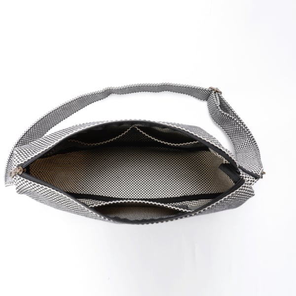 sasicco リーフショルダー 白と黒の市松 | 三河木綿 刺子織 タネイ | leaf shoulder bag | white & black