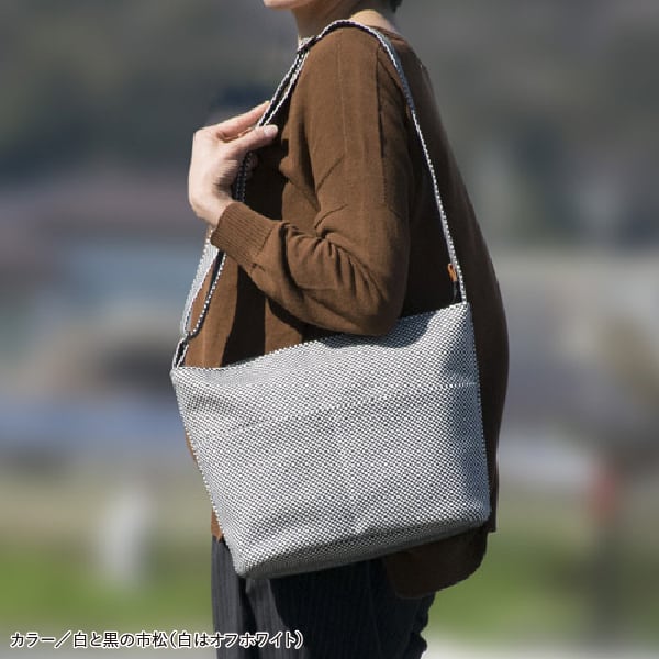 sasicco プレインショルダー 白と黒の市松 | 三河木綿 刺子織 タネイ | plane shoulder bag | white & black