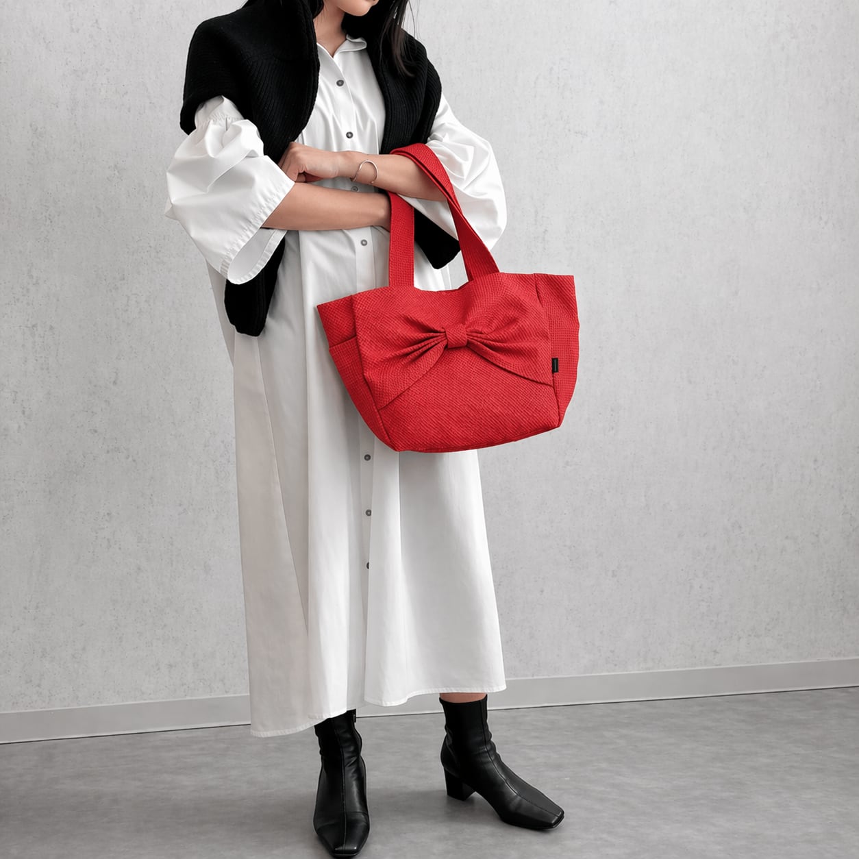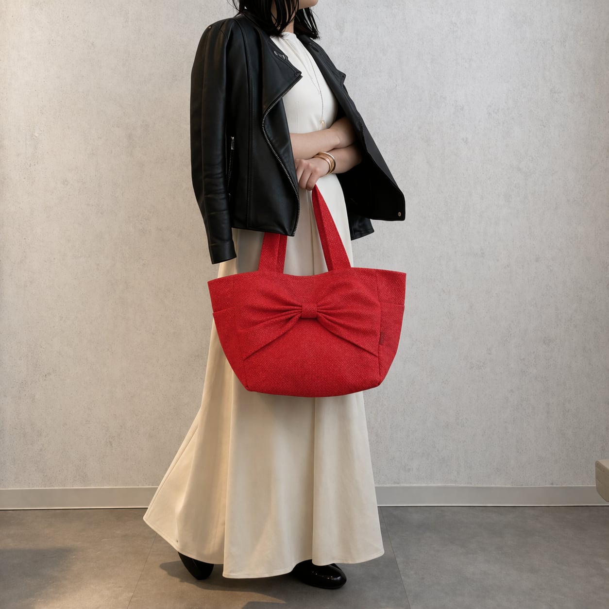 sasicco カインドバッグ 赤 | リボンバッグ | 三河木綿 刺子織 タネイ | kind bag | red
