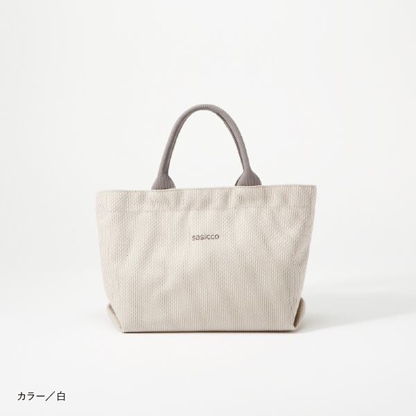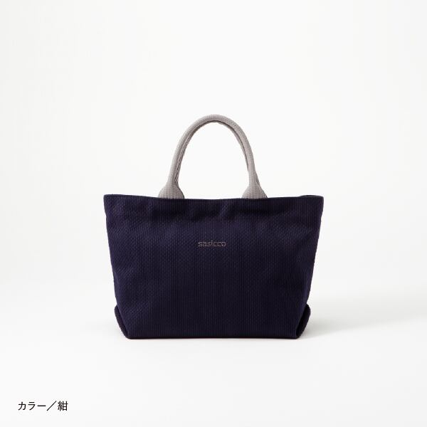 飽きの来ないシンプルなデザインにsasiccoのロゴの刺繍が施されたトートバッグ。